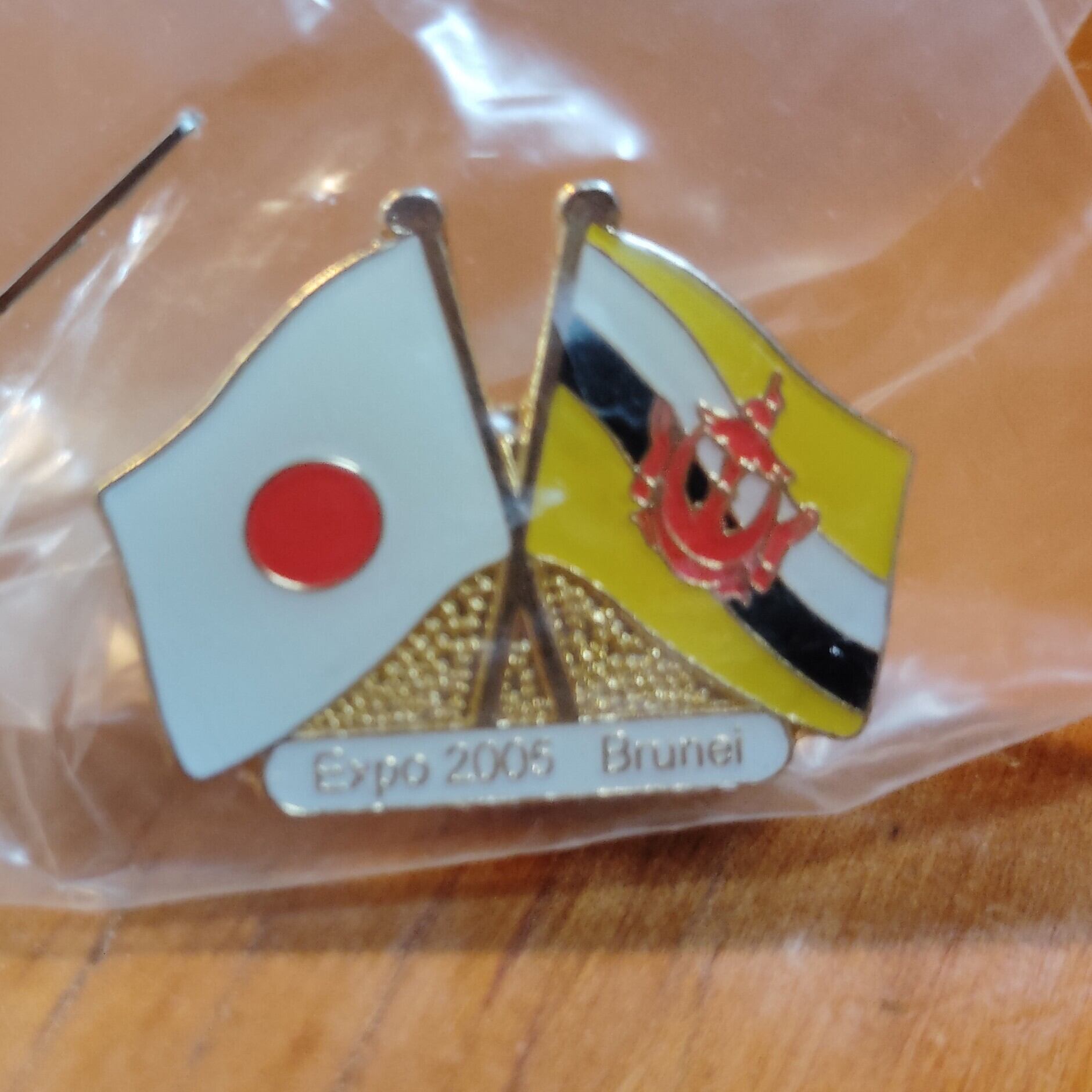 ボールペンとの写真は、大きさの目安としてみてください。この写真のピンバッチの国は入りません。