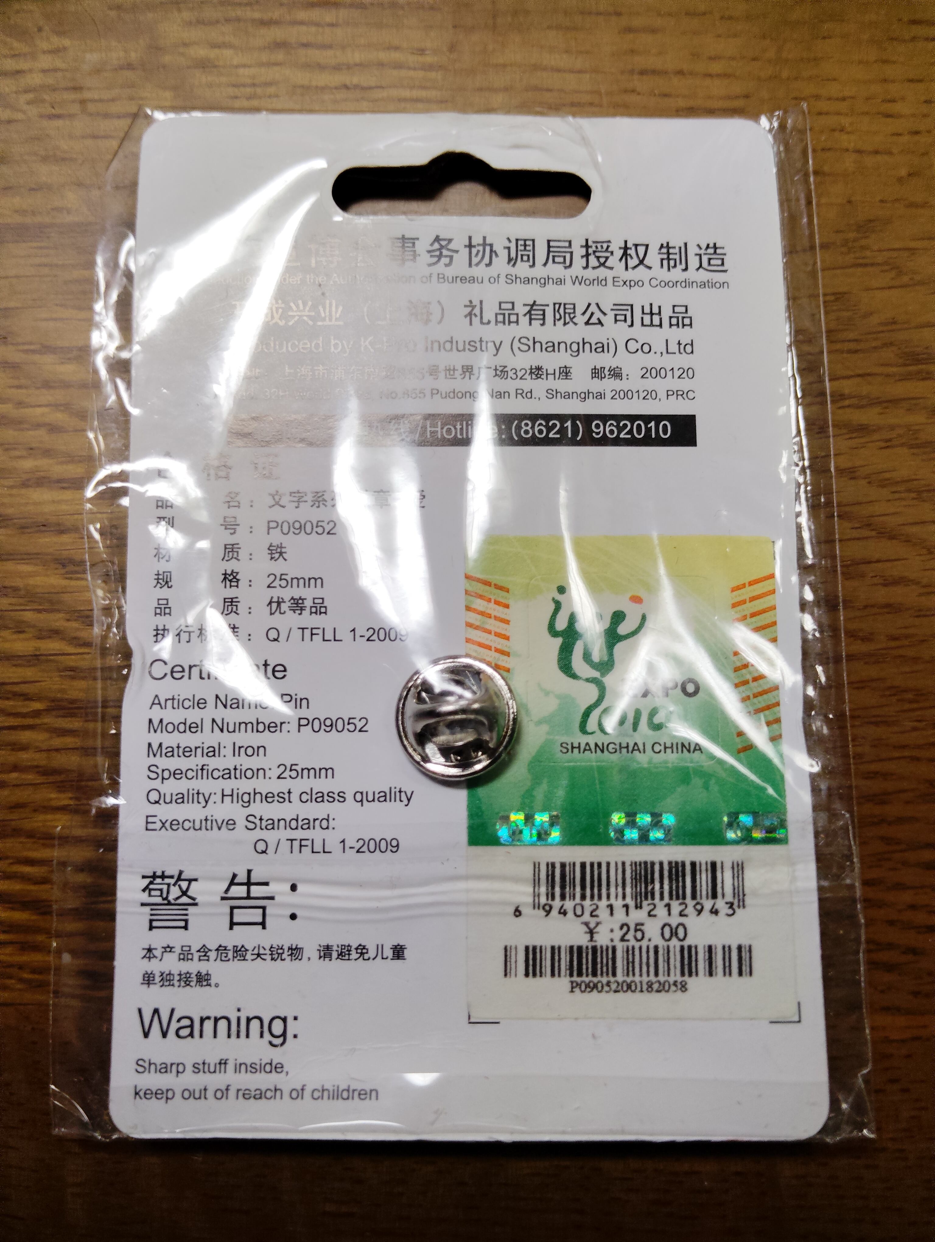 2010年.上海万博のキャラクター 海宝(カイパオ)のピンバッジです。