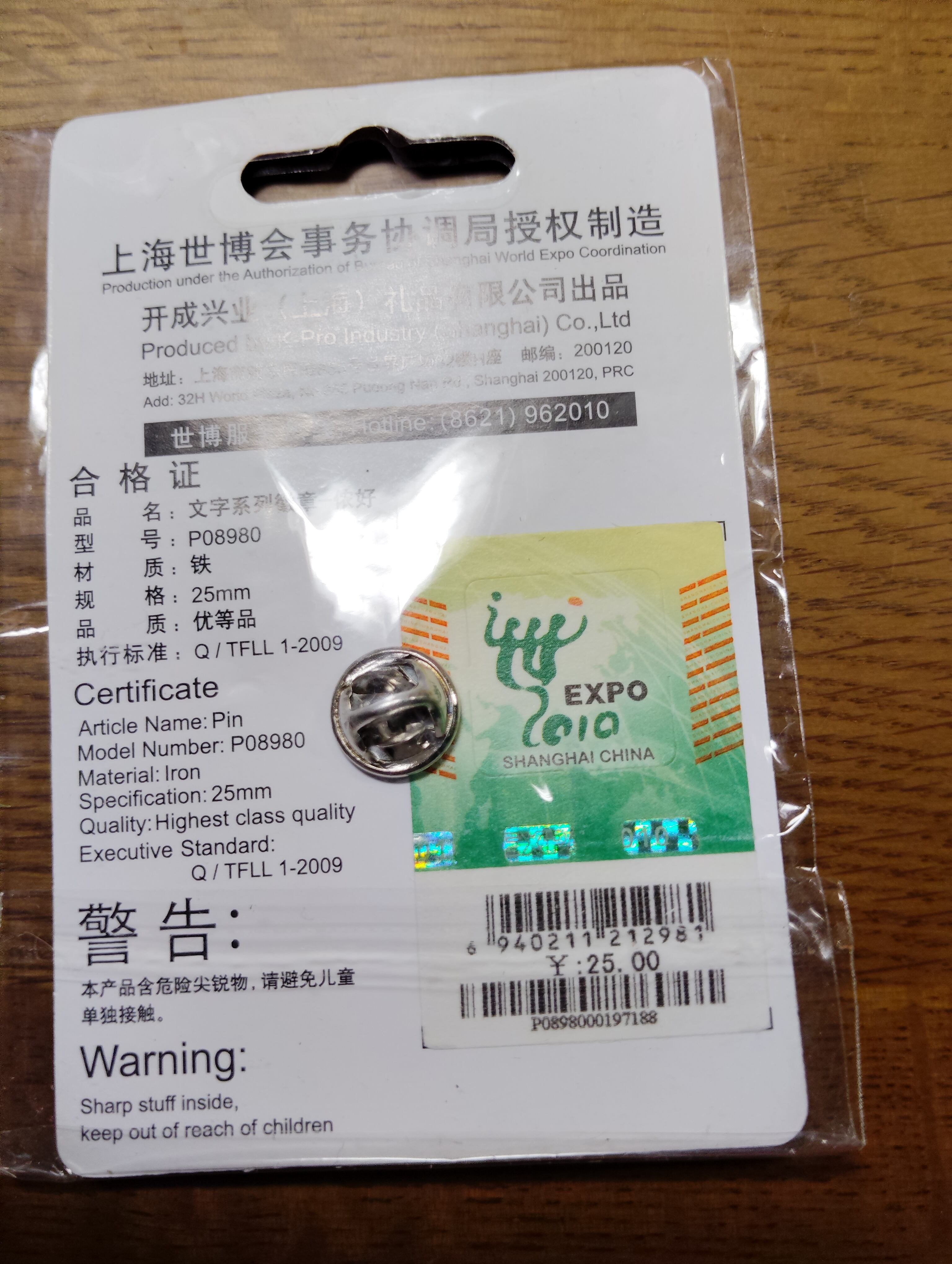 2010年.上海万博のキャラクター 海宝(カイパオ)のピンバッジです。