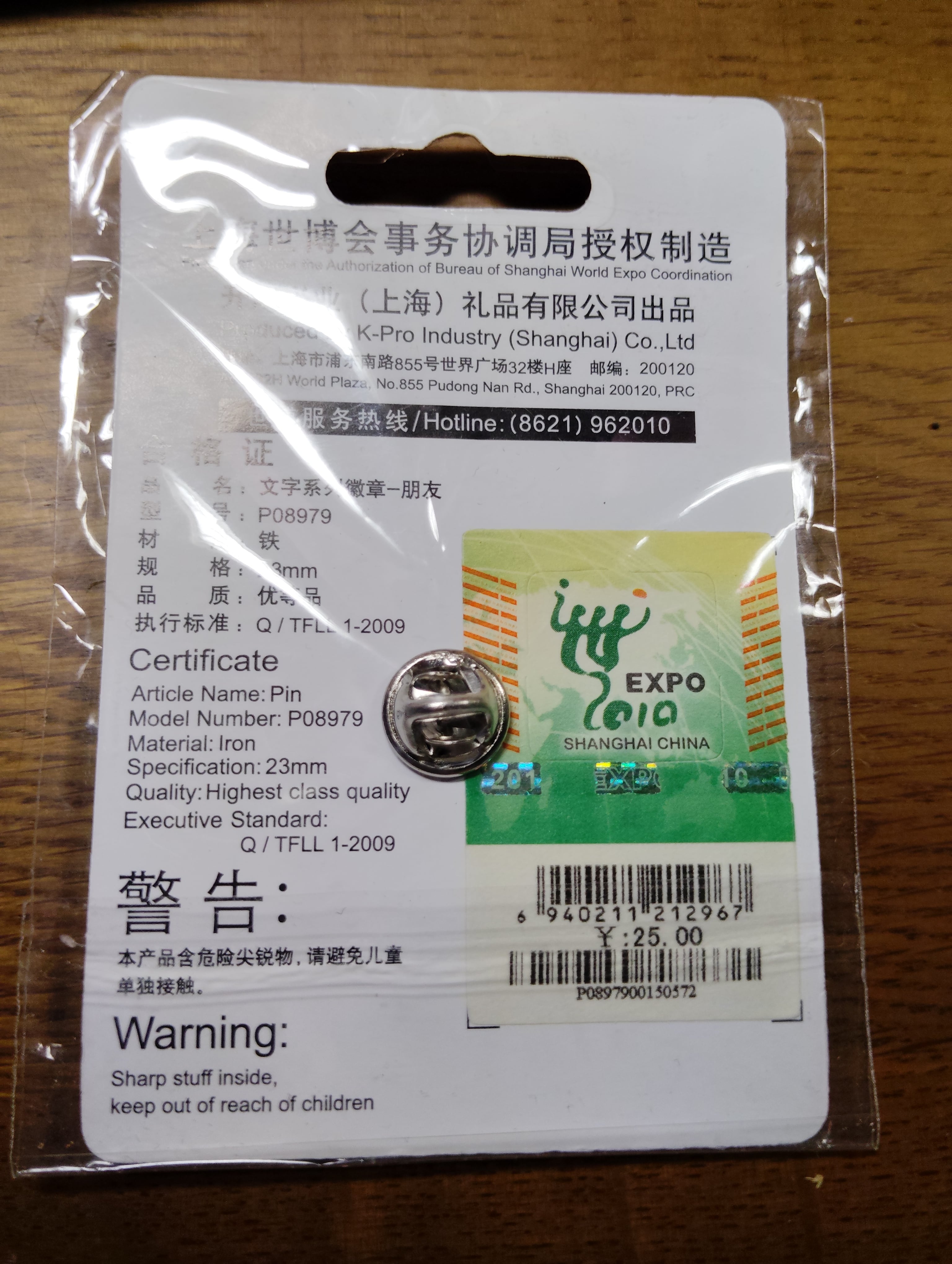 2010年.上海万博のキャラクター 海宝(カイパオ)のピンバッジです。