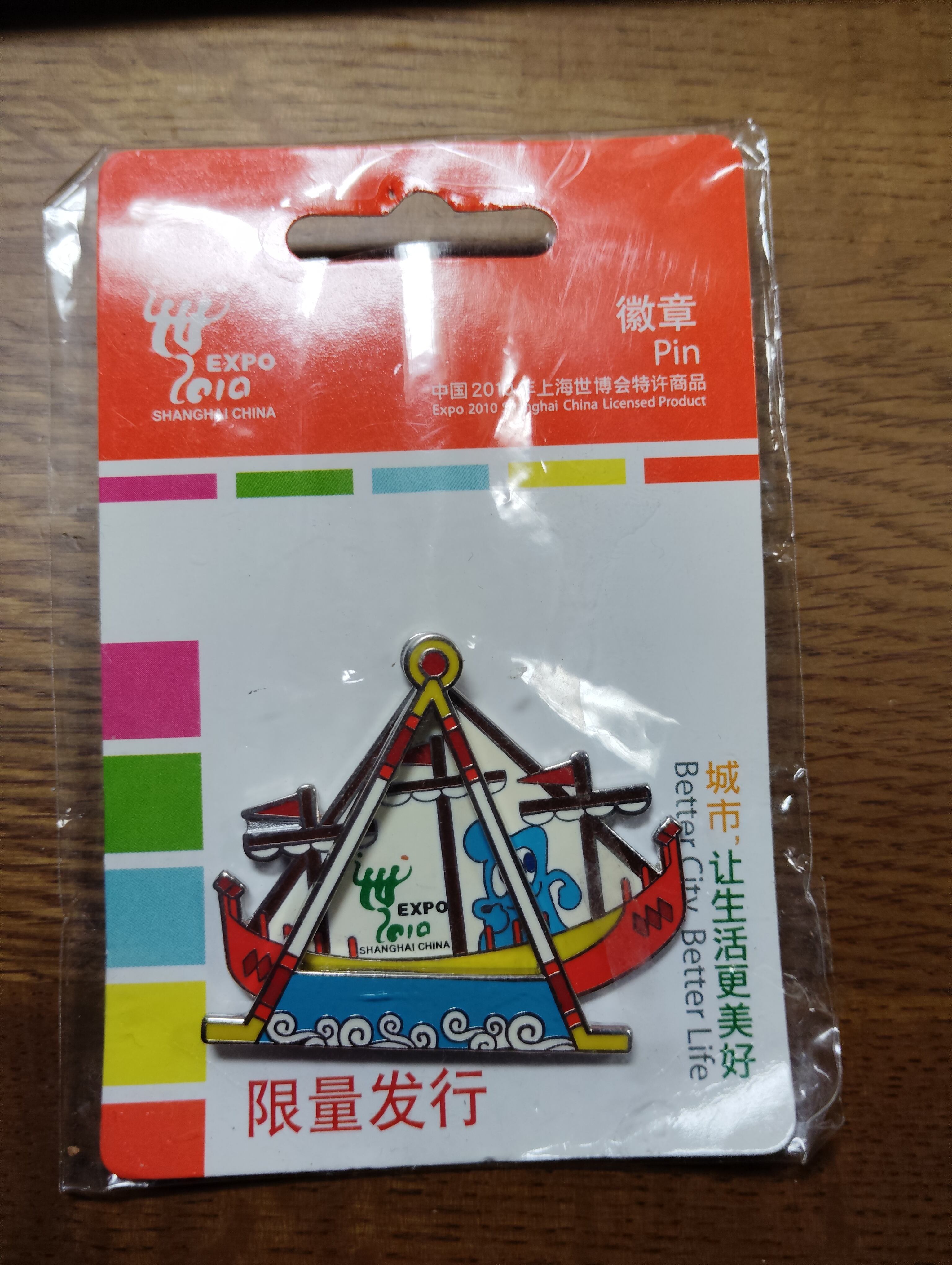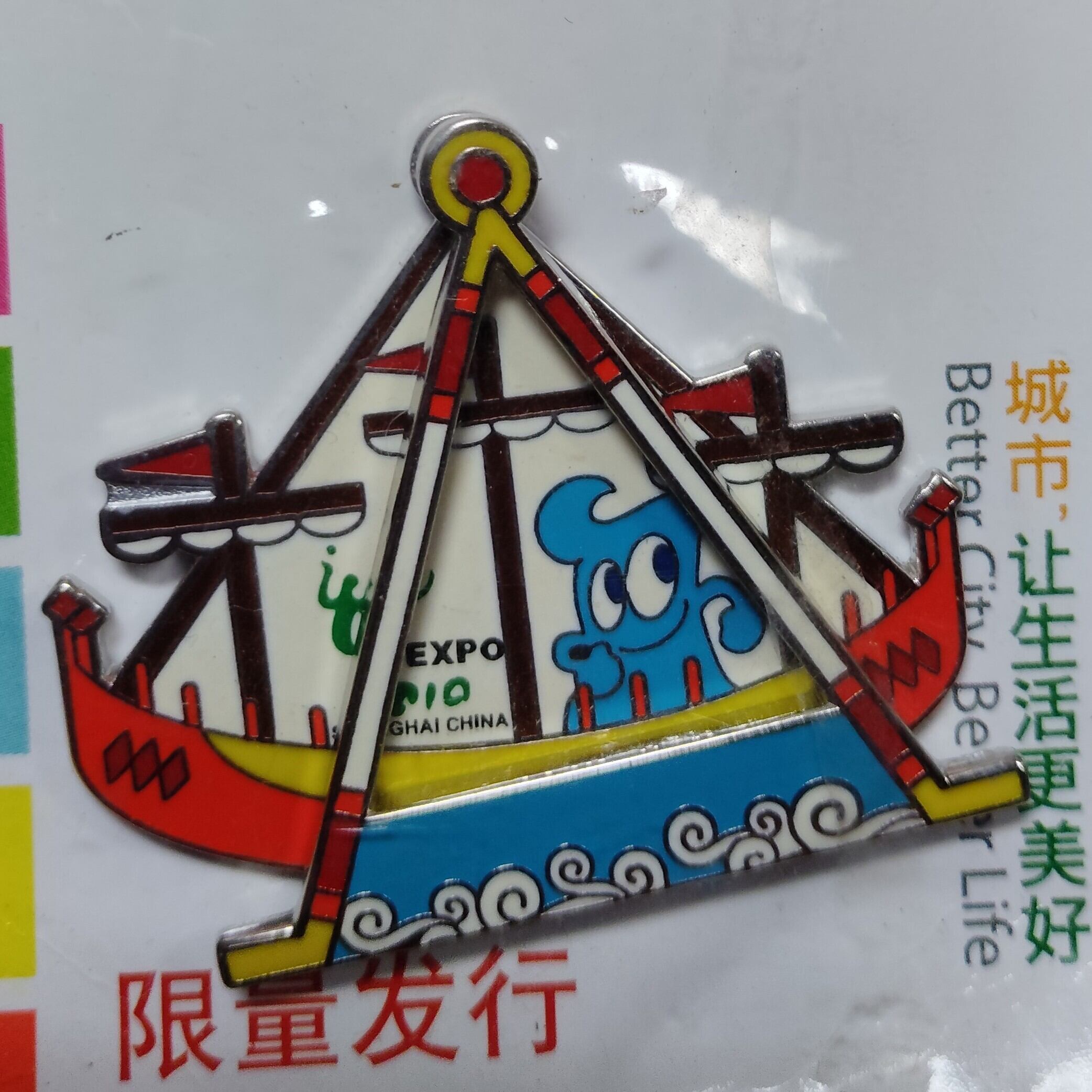 上海万博のキャラクターが船に乗っているデザインです。手前の波デザインが、プラプラと揺れる凝ったデザインです。