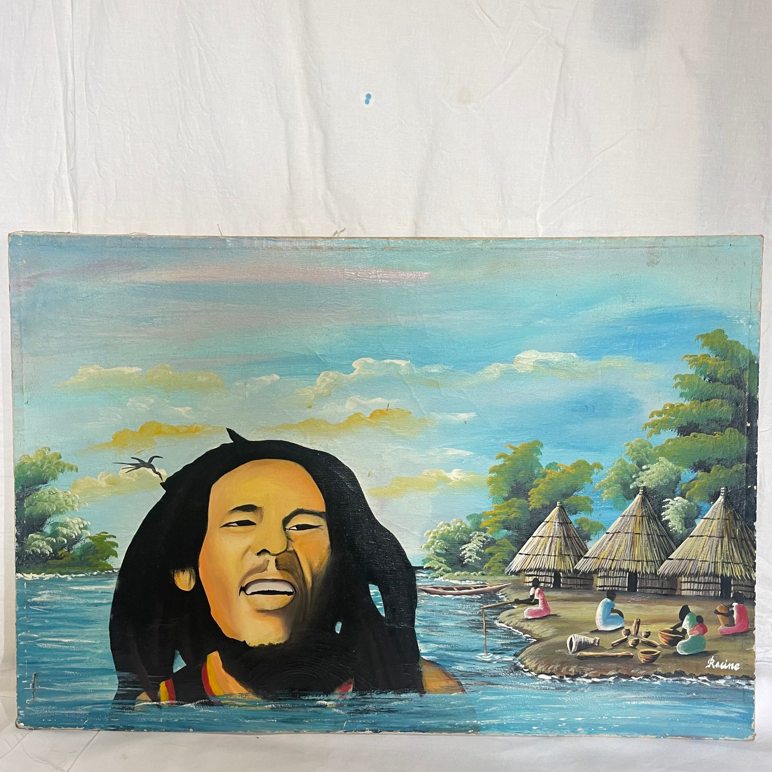 ベナン共和国の田津的な暮らしの背景に、ボブマーリーの顔が描かれています。